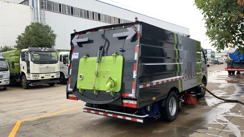底盤配置(可選): 1、輕卡型,朝柴 上裝配置: 1、帶2個(gè)中置掃盤;中置超寬吸嘴;雙層吸塵筒;康明斯170馬力副發(fā)動(dòng)機(jī);臺(tái)灣液壓閥;大力馬達(dá);德國(guó)高壓水泵(前沖/側(cè)噴/中噴/后噴霧)/側(cè)沖洗水槍/垃圾箱自潔裝置);萬(wàn)向高壓路沿清洗;威龍低壓泵(前沖),氣動(dòng)球閥控制;4mm不銹鋼垃圾箱;不銹鋼水箱;德國(guó)控制器;尾部箭頭燈;機(jī)油、垃圾箱、水箱均帶防溢或低位報(bào)警裝置;倒車及洗掃狀態(tài)室內(nèi)監(jiān)視器;多種語(yǔ)音提示;倒車自動(dòng)保護(hù)、防傾倒垃圾翻車保護(hù)、檢修安全保護(hù);20m高壓沖洗卷盤;刷臂轉(zhuǎn)動(dòng)機(jī)構(gòu)使用德國(guó)進(jìn)口高新耐磨工程隔套,免打黃油;精密冷彎無(wú)縫液壓油管;運(yùn)動(dòng)控制器一鍵電腦控制。 ![]() 產(chǎn)品功能特點(diǎn)