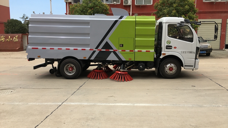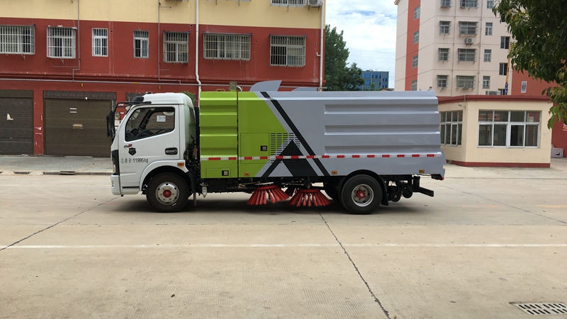 1、采用吸掃結(jié)合的方式收集垃圾,濕式除塵、電液控制,液壓傾翻卸料的作業(yè)方式對路面進行清掃作業(yè)。