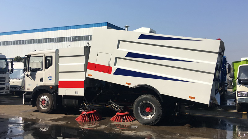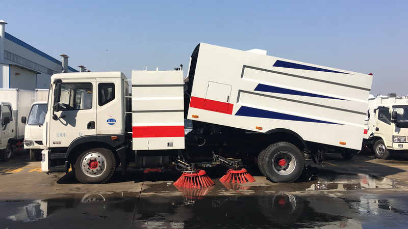 1、采用吸掃結(jié)合的方式收集垃圾,濕式除塵、電液控制,液壓傾翻卸料的作業(yè)方式對路面進行清掃作業(yè)。