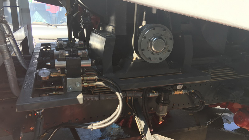 3、采用"中置四盤刷+后置吸嘴"的結(jié)構(gòu)布置,便于清掃裝置與吸嘴的調(diào)整和維護,轉(zhuǎn)場時整車通過性好。