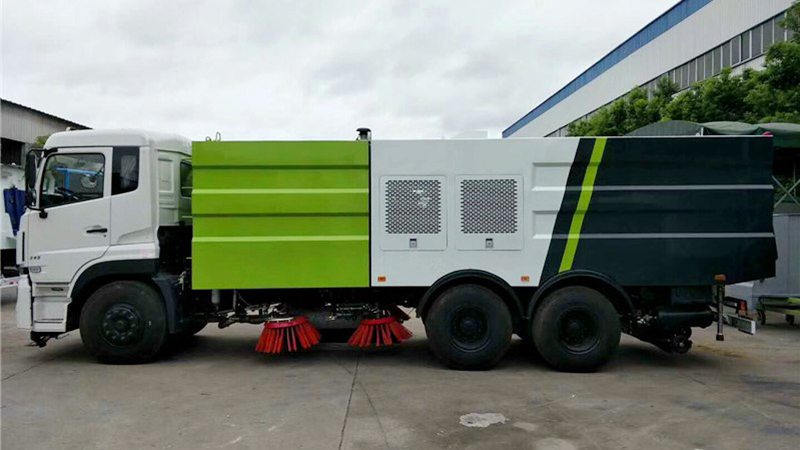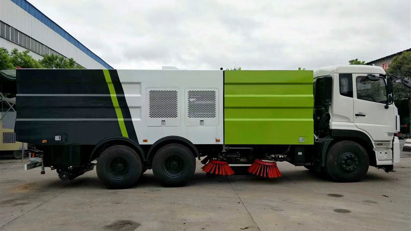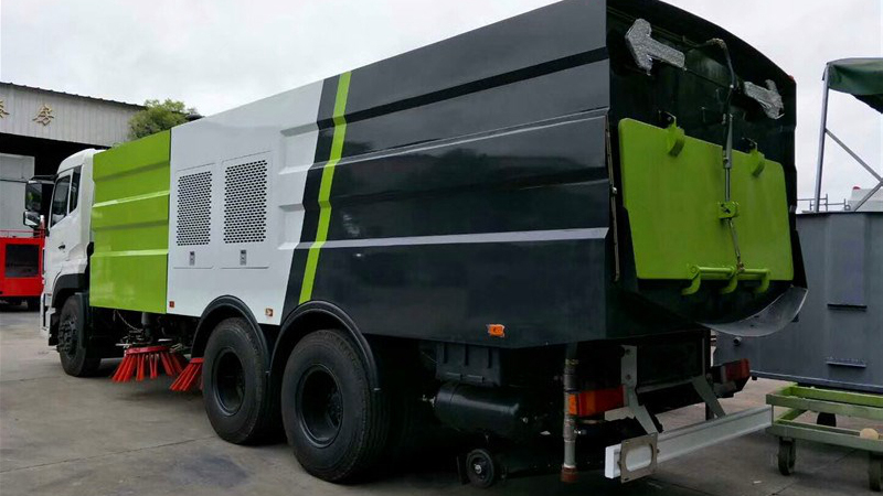 1、采用吸掃結(jié)合的方式收集垃圾,濕式除塵、電液控制,液壓傾翻卸料的作業(yè)方式對(duì)路面進(jìn)行清掃作業(yè)。