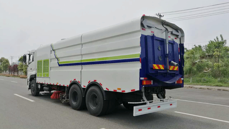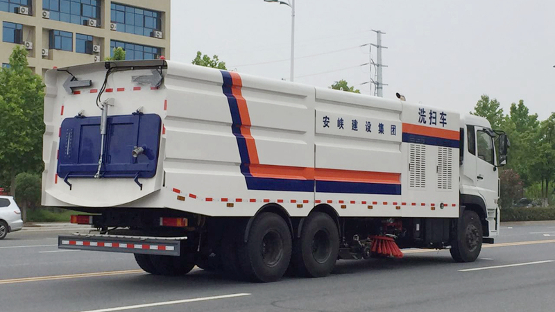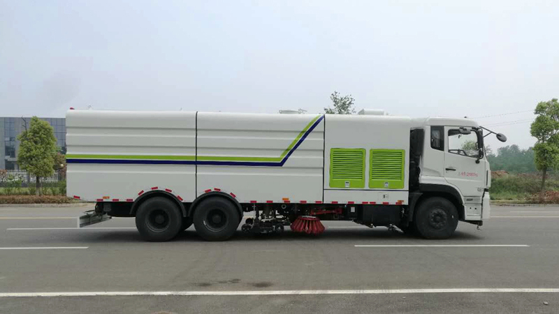 8)采用先掃,后沖刷,再吸收的工作方式,能將垃圾及污水一次清掃、沖刷、吸收干凈。路面作業(yè)后無(wú)塵土,無(wú)積水;